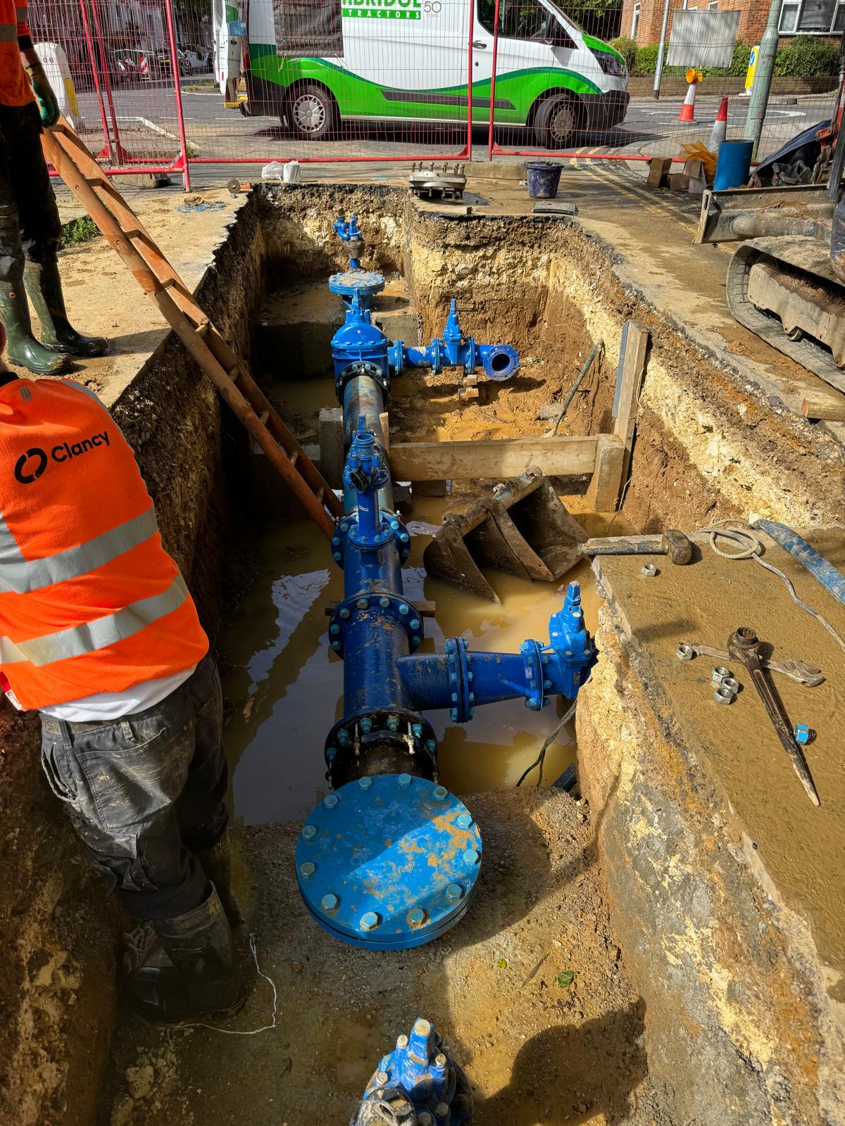 We are currently working alongside Clancy to replace and repair Southern Water’s distribution network in Sussex, Kent and Hampshire which involves all metering schemes and we specialise in large diameter pipe work and chamber construction.